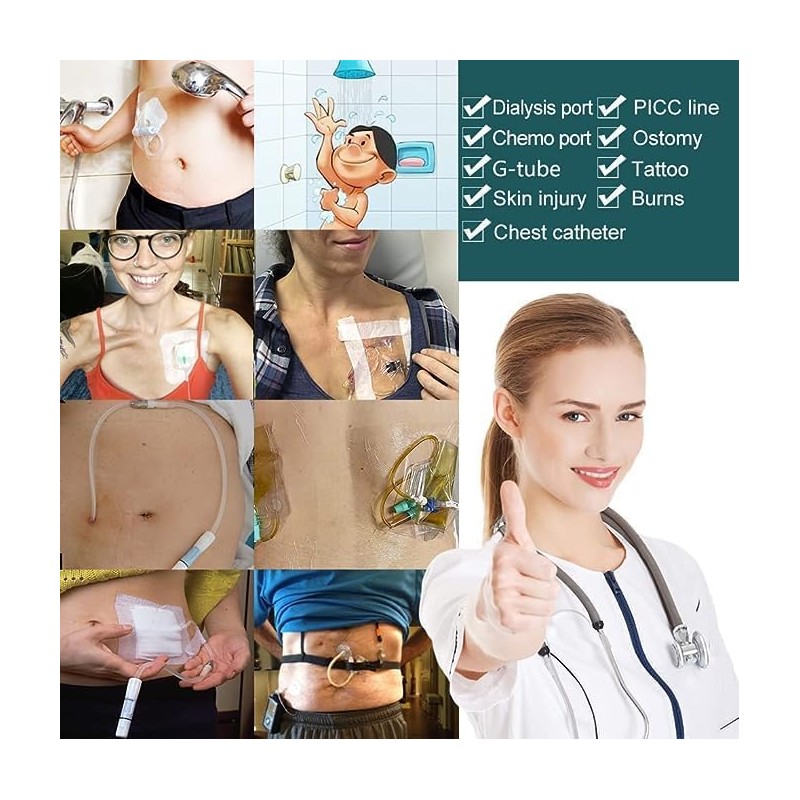 - 🍃SHOWERING WITHOUT WORRIES AGAIN, NO WATER GET THRU! - Could not take showers for fear of getting the wound stitches wet which causes infection? These shower cover shield moisture barrier allow you the freedom of showering without getting port wet and protect you picc line from water. Chest port shower protector cover also effectively protects bandages and dressings from water, keeps everything dry and makes taking a shower an independent activity once again.