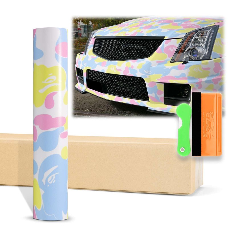 12"x60" (1FTx5FT) Camouflage Ape Bubblegum Yellow Pattern Matte Vinyl Wrap Auto Car Sticker Decal Film Sheet Bubble Free Air Release Technology with Tool Kit