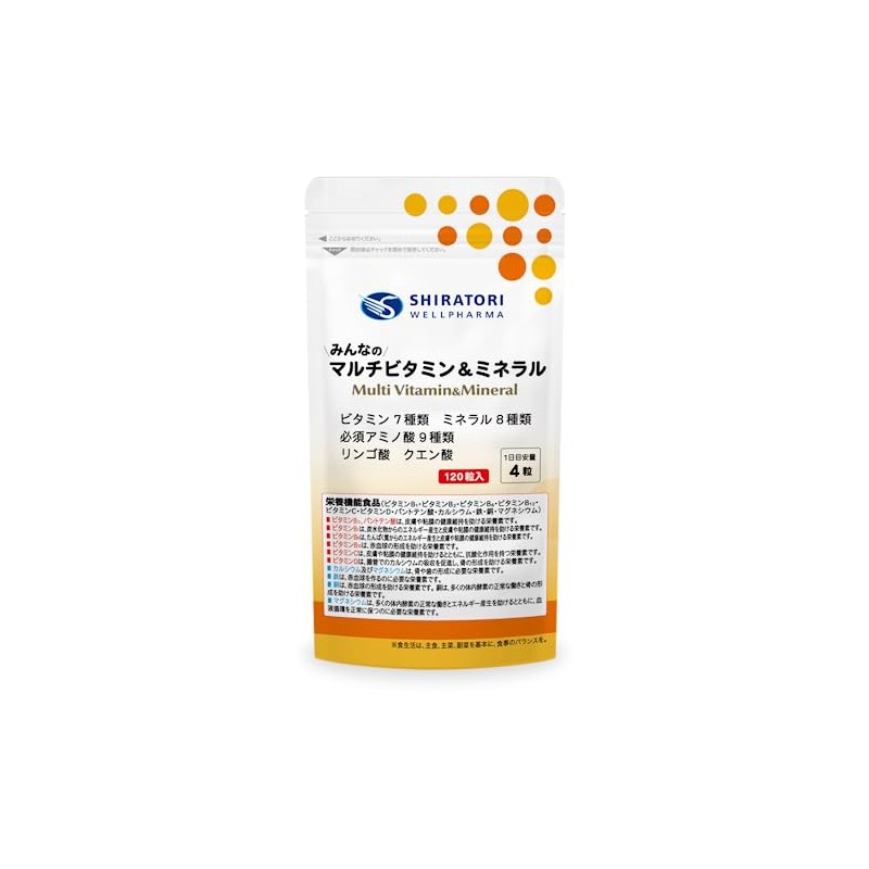 白鳥ウェルファーマ みんなのマルチビタミン&ミネラル[栄養機能食品] ビタミン7種類/ミネラル8種類/必須アミノ酸9種類 120粒(30日分)日本製