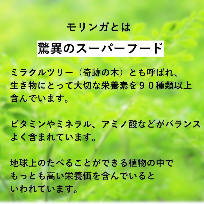 - ✅90種類以上の栄養素を含む、奇跡の木モリンガに、オリゴ糖を配合して、スッキリをさらに感じていただきたい。