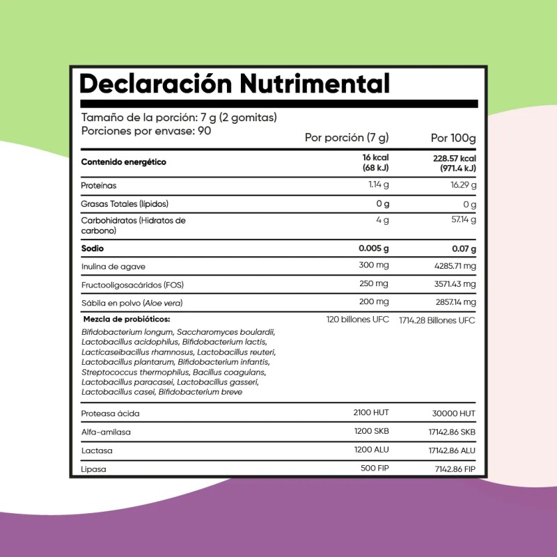Fórmula 3 en 1 para salud digestiva: Con probióticos (120 billones UFC), inulina de agave, aloe vera y enzimas digestivas para apoyar microbiota equilibrada, absorción eficiente y bienestar intestinal diario.