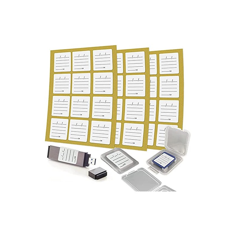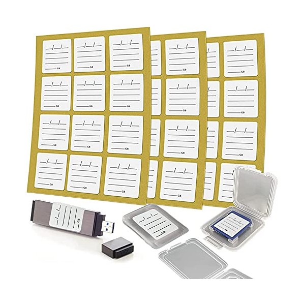 (120 Count) Stick-On SD Memory Card Label / Flash Drive Label Stickers with 6 Free SD Card Cases & Container-- [Writable & Removable]