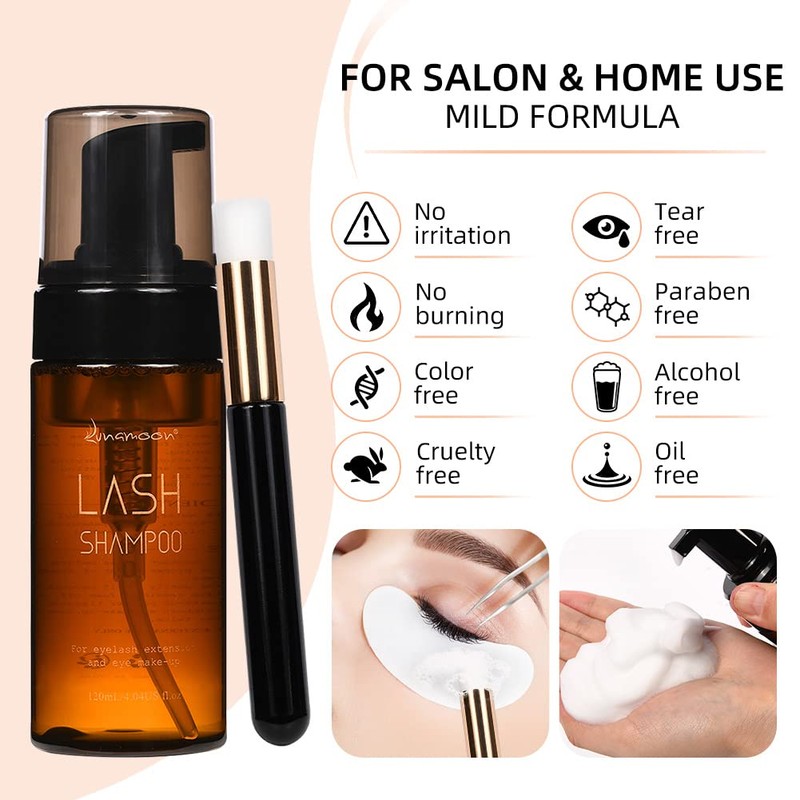 - The oil-free formula lash shampoo, does not decompose the glue at the eyelash roots and eyelash shampoo can make your eyelash extension healthy and long-lasting. This eyelash foam cleanser is ideal as a aftercare for eyelash extensions or daily make-up.