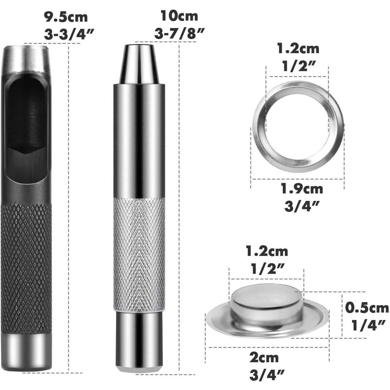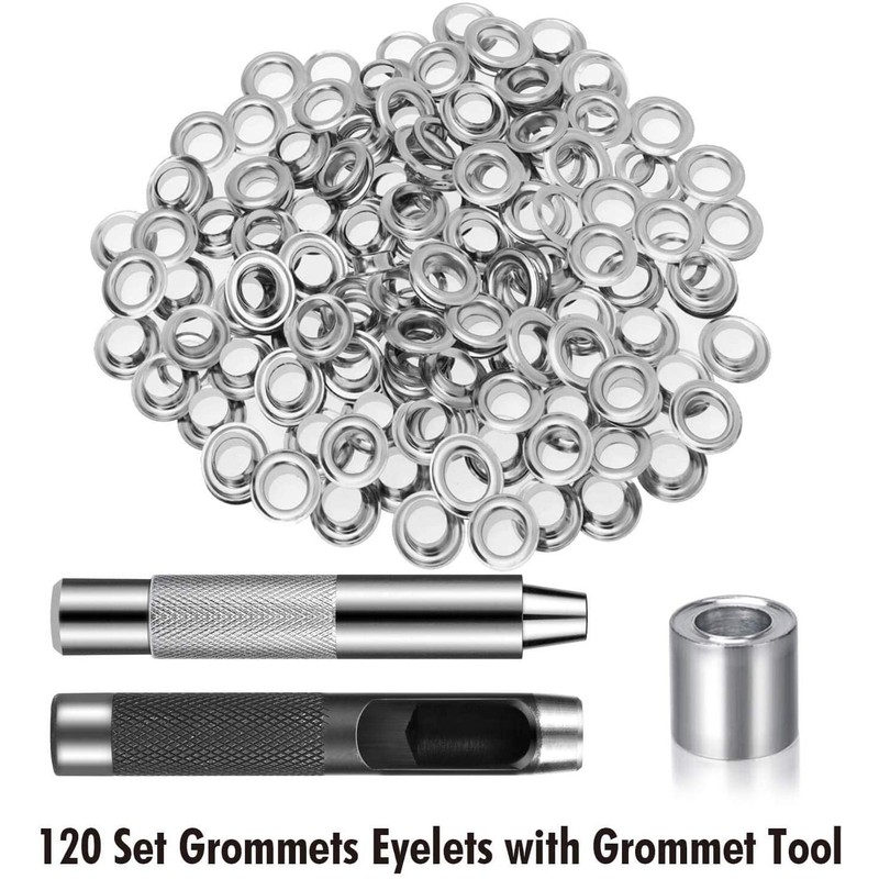 120 Pcs 12mm Metal Grommets Eyelet Punch Set with 3 Eyelets for Tarpaulins, Fabric Curtains, Linen, Hole Punch