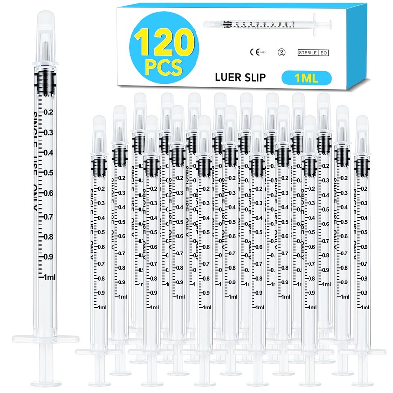 - SPECIFICATIONS: One box contains 120 1ml/cc syringes with caps (no needles).