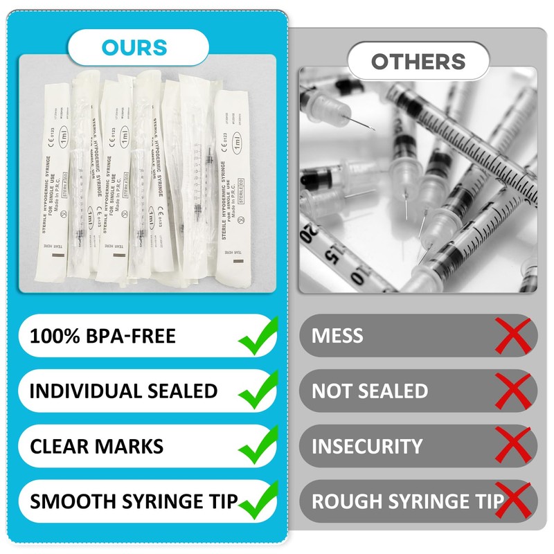 - INDIVIDUAL PACKAGING: The syringes are designed for single use, each one comes in an individually sealed package. Clean and tidy to keep out dust, easy to carry and store.