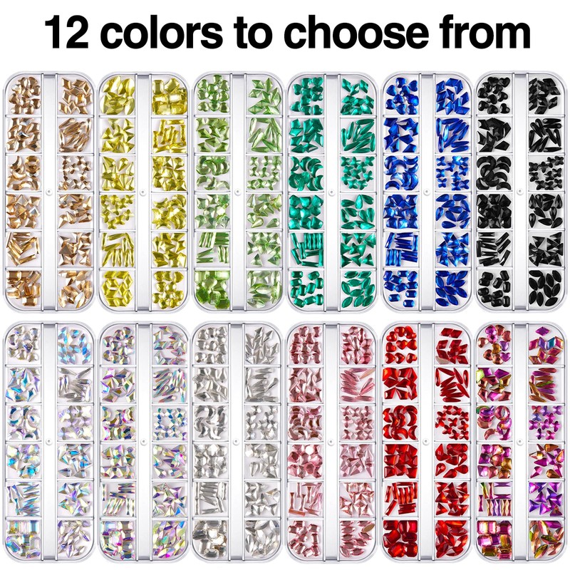 - 12 Kinds Multi-shaped Flatback Glass Rhinestones:Our 3d nail art rhinestones are available in 12 different hot selling styles, such as Long water droplet rhinestones, butterfly rhinestones, water droplet rhinestones, triangle rhinestones, horse eye rhinestones, heart-shaped rhinestones, arrow rhinestones, moon rhinestones, diamond rhinestones, rectangular rhinestones, octagonal rhinestones; flat back rhinestones and gems can be easily applied to natural and artificial nails.