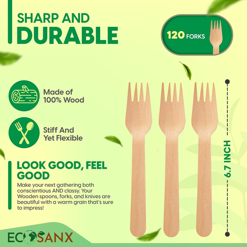 120 PCs Wooden forks set | 6.5" Splinter Free Compostable Forks, Biodegradable, Eco-Friendly | 100% All - Natural Bamboo Utensils for Outdoor, Party & More - Disposable Bamboo forks