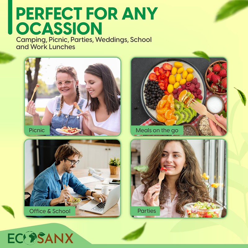 - 🍴 Complete Set: With 120 compostable forks, our bamboo cutlery set is perfect for any event, big or small.