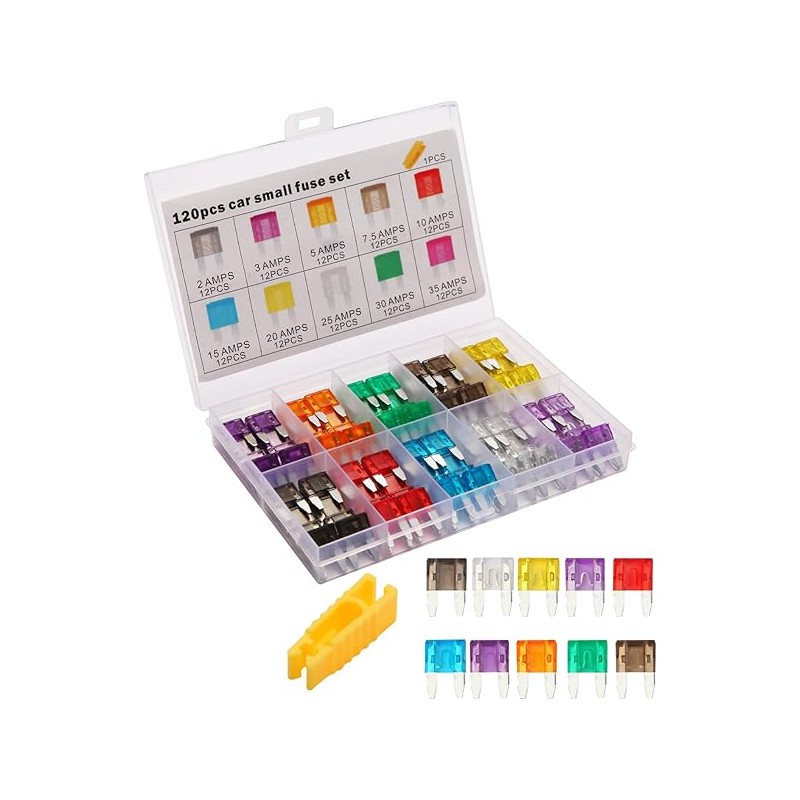 120 Pieces Mini Fuse Kit, Car Fuse Assortment Kit, Mini Blade Fuses Automotive for Car, RV, Truck, Marine, Motorcycle, Auto Accessories(2A/3A/5A/7.5A/10A/15A/20A/25A/30A/35A)