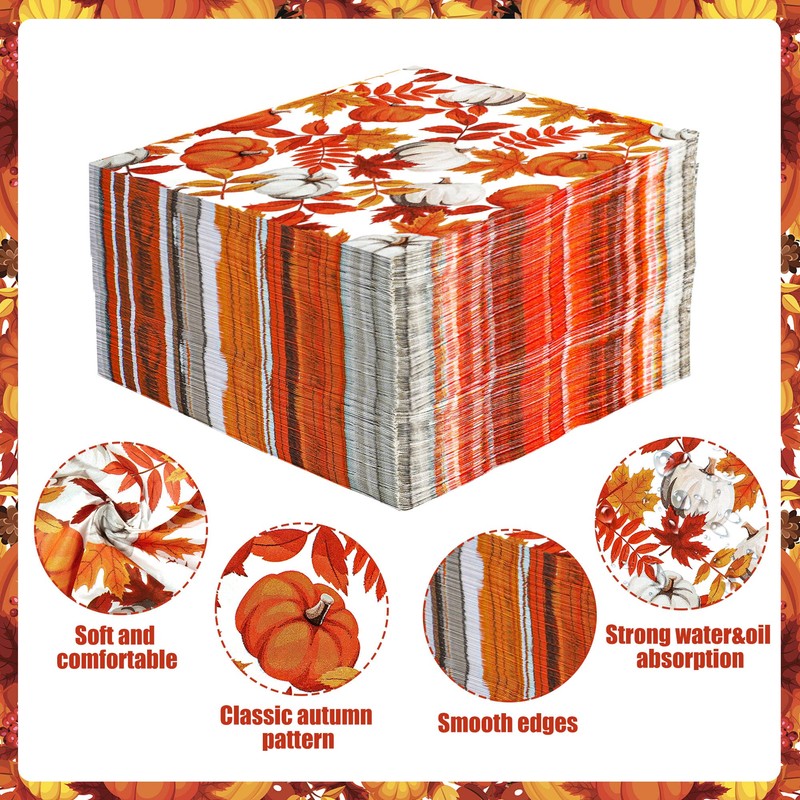 120 servilletas de papel de otoño, calabaza, hojas de arce, servilleta de almuerzo desechable para otoño, decoración de mesa de baño, 120 unidades