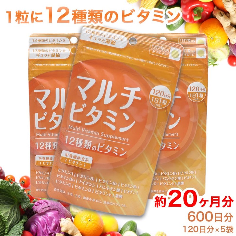 マルチビタミン タブレット 120日分 ×5袋 サプリメント 12種類のビタミン ビオチン 栄養機能食品