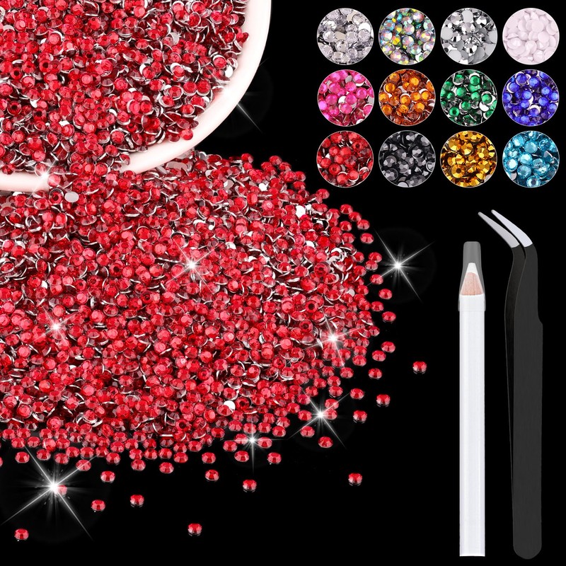 - 💎PACKAGE CONTENT -- The package contains approx. 12000 pcs of 2mm-SS6 (0.08") bling-out resin rhinestones (Red). The large amount will support you to fulfill a number of your wonderful DIY decoration ideas. Additionally, 1 tweezers and 1 pickup pen are included for easily picking up of glittering gems.