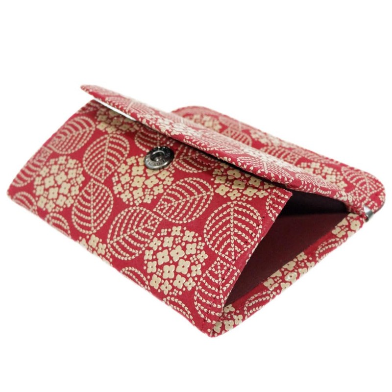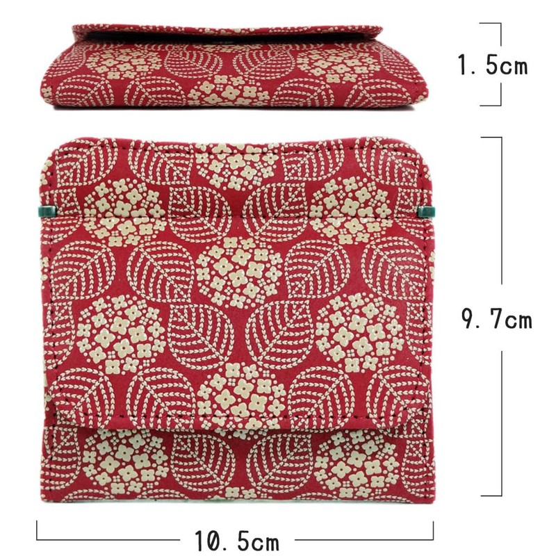 印傳屋 印伝 薄い財布 ホック式小銭入れ 1208 小銭入G 赤地鹿革白漆 あじさい柄 9.7cm×10.5cm×1.5cm ボックス型コインポケット