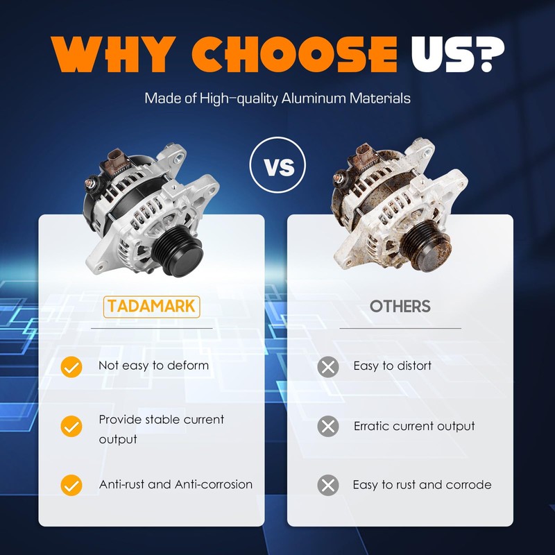 Perfect match: Fit perfectly with your vehicle, the alternator is market tested by our customers.