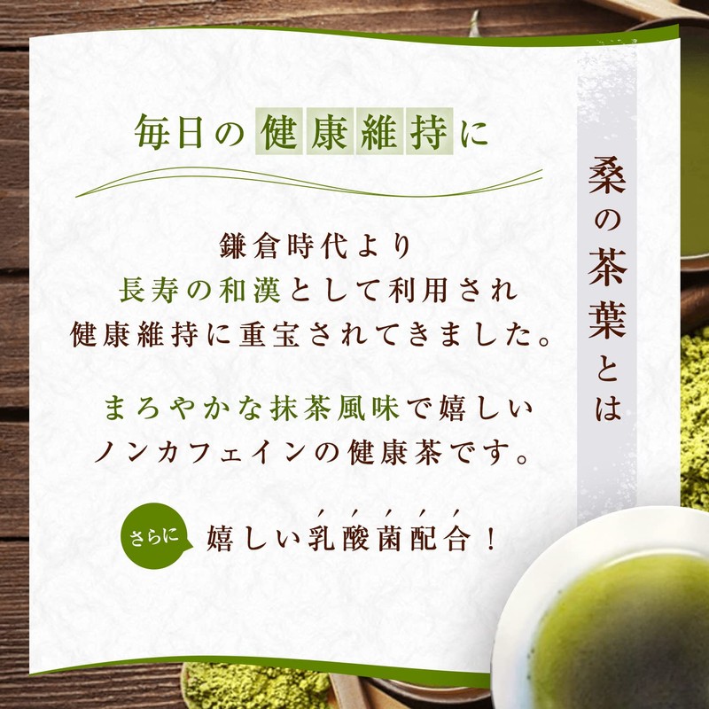 - 内容量:120g 原材料:桑葉粉末(山梨県産)、難消化デキストリン、乳酸菌