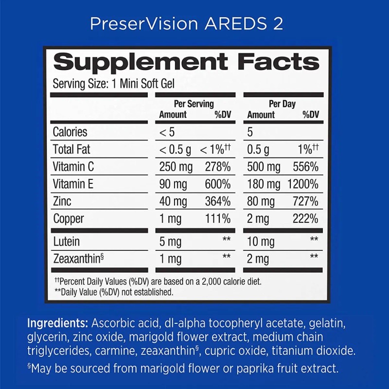120gels Vitaminas Minerales Preservision Areds-2 Para Ojos Sabor Sin Sabor de Bausch Lomb Suplemento Para Los Ojos Que Contiene Luteína Vitamina C Zeaxantina Zinc y Vitamina E