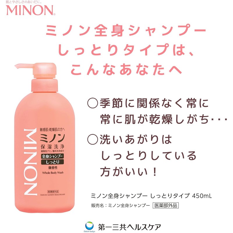 ミノン全身シャンプーしっとりタイプ 本体ボトル 120mL ボディソープ 敏感肌 肌あれ防止 保湿 乾燥対策 弱酸性 低刺激性 【医薬部外品】