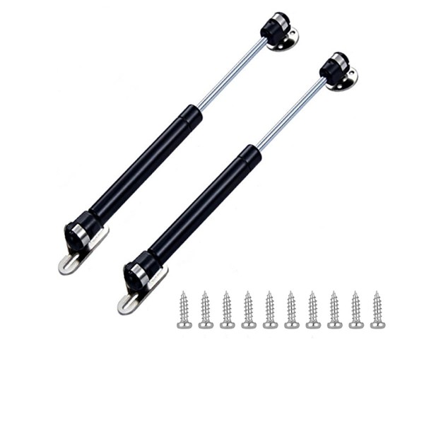 120N/27 lb Gas Strut Cabinet Hinge Safety Lift Support, Soft Open & Down Lid Support & Buffer Telescopic Cabinet Door Glue Head Gas Spring Supports 10 inch Length Black (2 Pack)