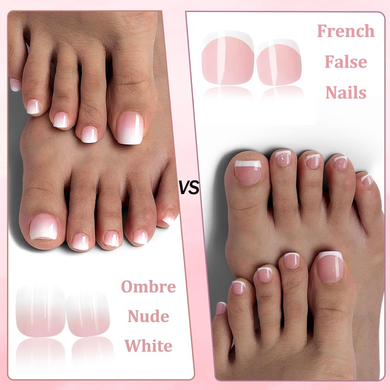 - 【Long-Lasting Fake Toeails】:Our ombre false toe nails are designed to be thicker at the front and thinner at the back for a perfect fit on your toenails. And the strong nail glue is very sturdy, waterproof and not easy to come off, it can make the stick on toe nails last 2-3 weeks