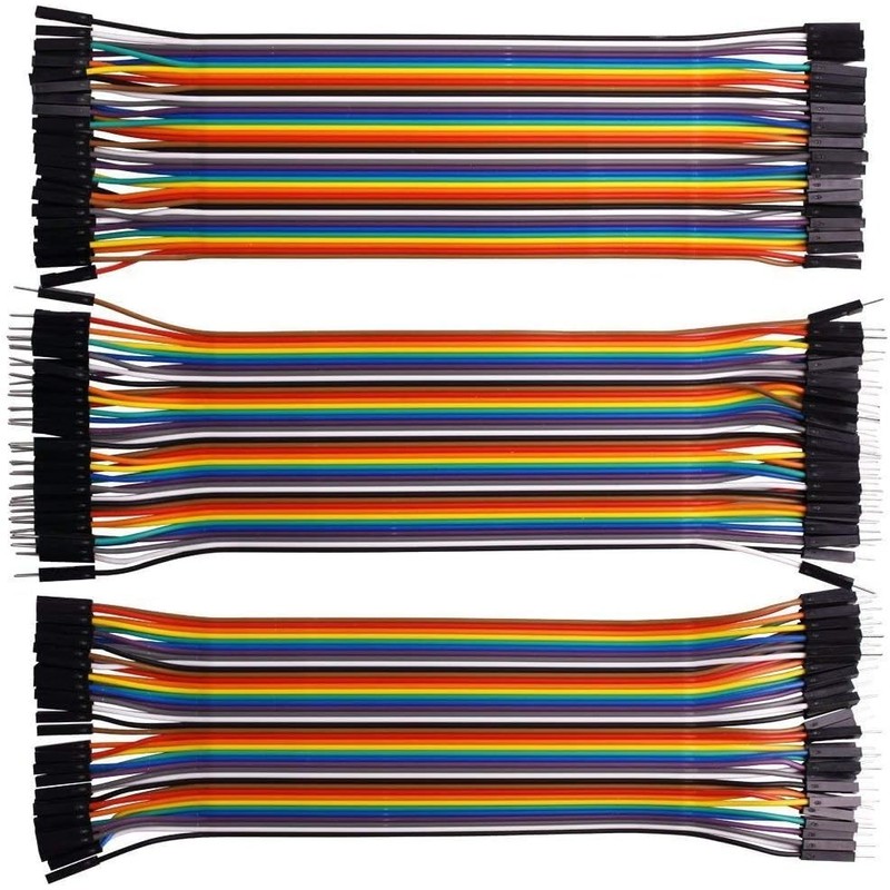 120pcs Multicolored Dupont Wire 40pin Male to Female, 40pin Male to Male, 40pin Female to Female Breadboard Jumper Ribbon Cables Kit Compatible with Arduino Projects