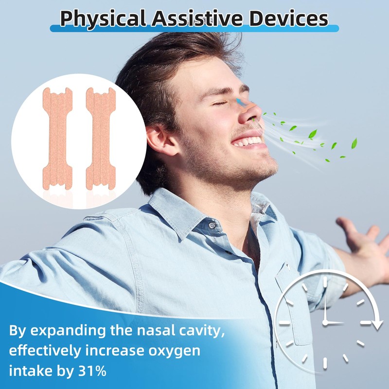 - 【Effective Snoring Relief】 The nasal strips gently lift and widen the nasal passages, increasing oxygen intake by up to 31%, promoting smooth breathing and significantly reducing the frequency of snoring, alleviating the associated breathing troubles.