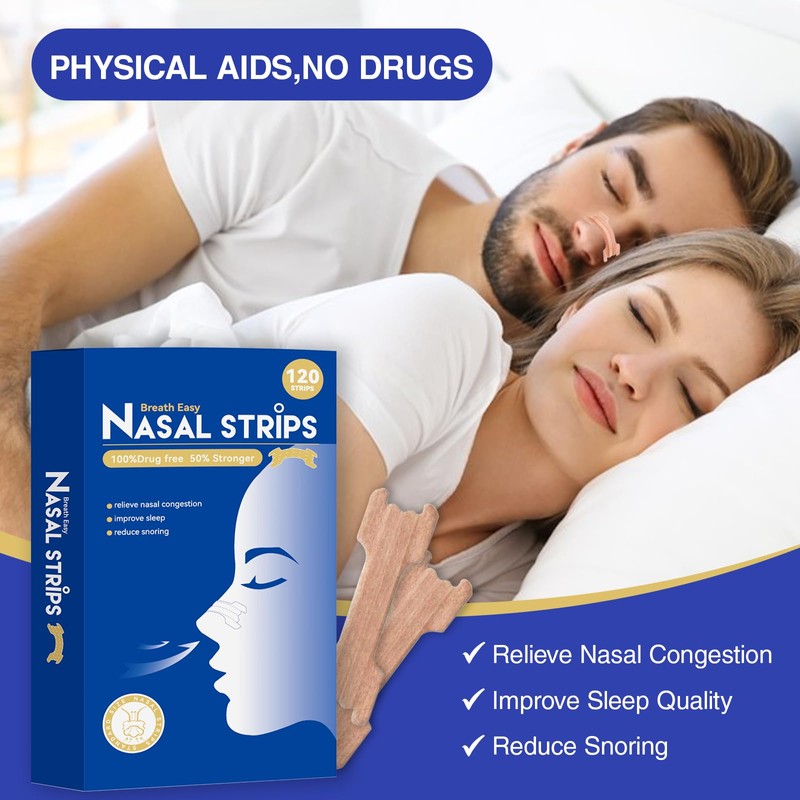 - 【Wide Application】Package:120Pcs Nose strips.Not only does it alleviate various problems caused by snoring, but it's also great for relieving nasal congestion caused by colds and improving breathing when running or exercising.
