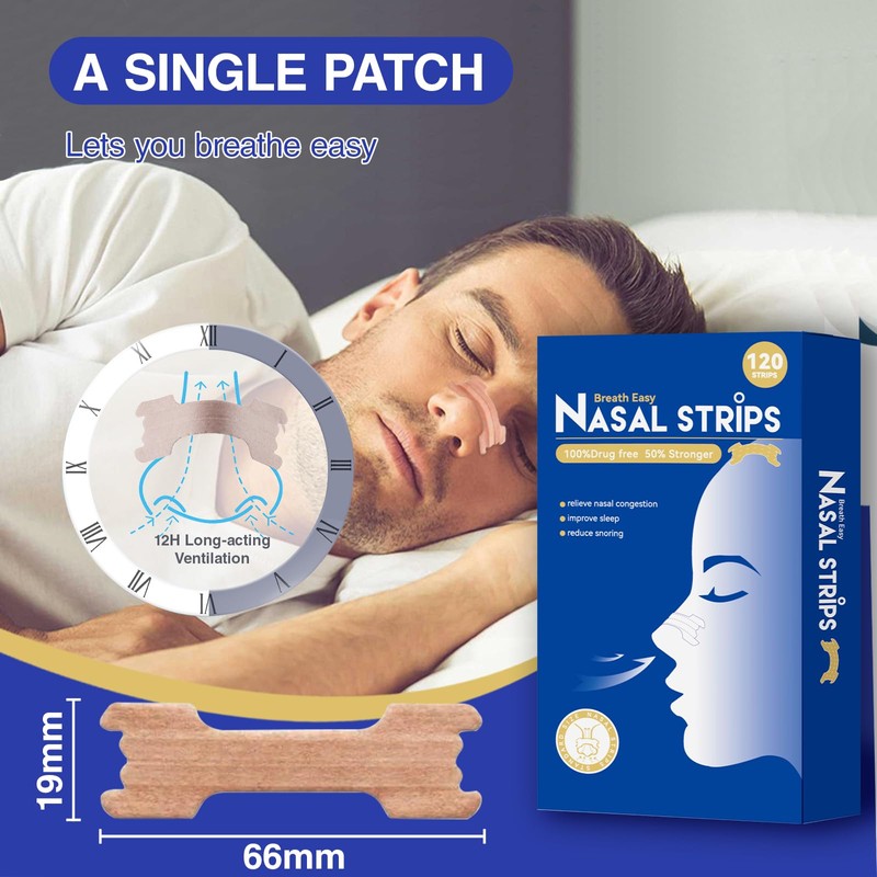 120Pcs Nasal Strips for Snoring,Extra Strength Nose Strips Breathing,Drug-Free Nose Tape for Sport&Sleep,Anti Snoring Strips Improve Sleep Quality,Help Stop Snoring&Nasal Congestion Relief(66x19mm)
