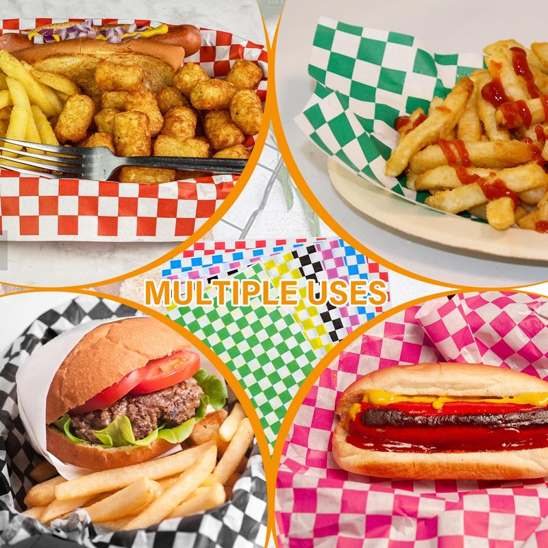 • Colorful Festive Design: Included 120Pcs Deli Paper Sheets come in 6 colors*20 sheets each colors: red, black,blue, green, yellow and pink; perfect for adding a festive touch to your food presentation at parties, fairs, and outdoor events