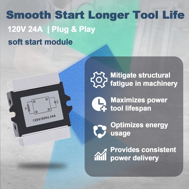 - 【Reduced Inrush Current】: The soft start module effectively minimizes inrush current during startup, ensuring a seamless power-on process and preventing fuse blowouts when turning on your tools.