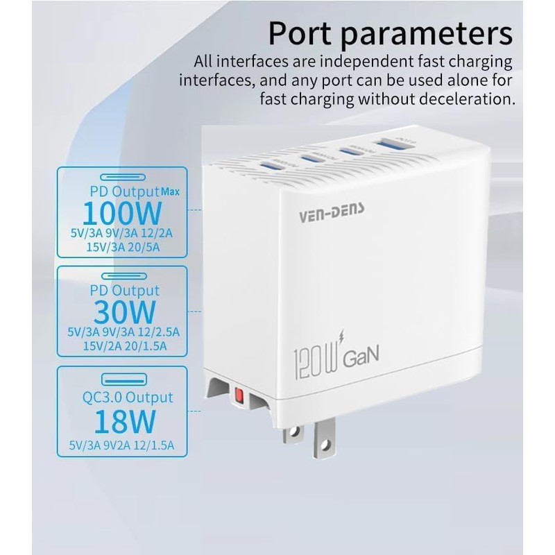 - Equipped with 3 USB-C ports and 1 USB-A port, this USB C charger can power up to 3 devices at the same time, including laptops, tablets, smartphones, maximising productivity and saving desktop space.