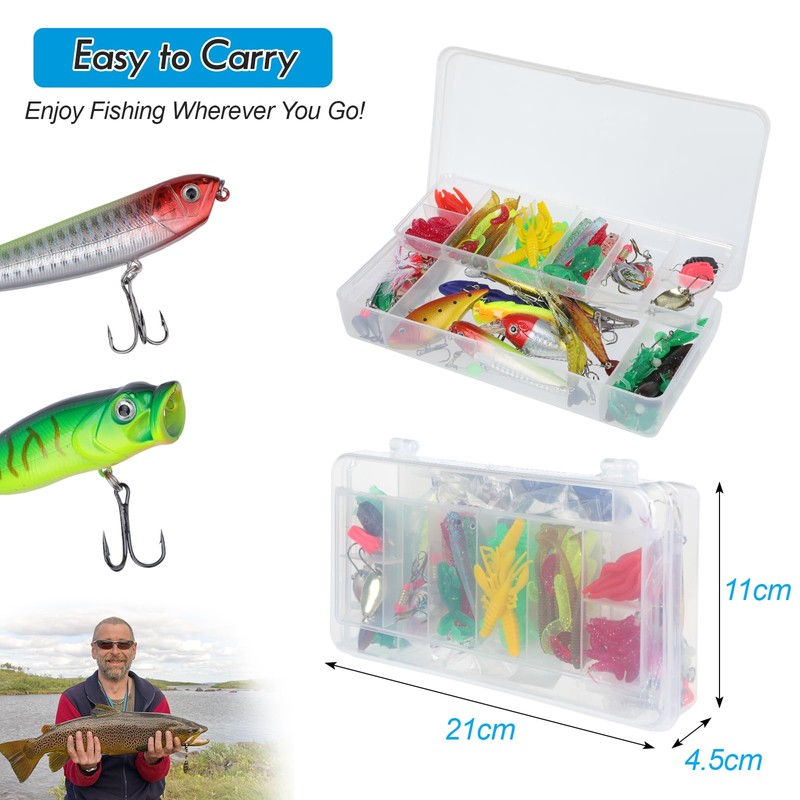 - 【Perfektes Angelgeschenk】Dieses umfassende Angelset enthält eine Vielzahl von Ködern und Haken in allen Größen und Formen für Seen, Flüsse, Teiche und Bäche. Es eignet sich sowohl für erfahrene Angler als auch für Anfänger und ist eine fantastische Geschenkwahl für Menschen. Praktisch, hochwertig und tragbar - dieses Angelköder-Set wird Sie sicher beeindrucken.