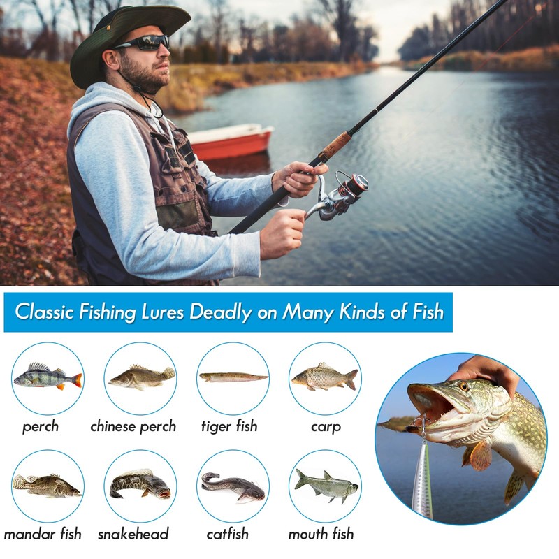 - 【Life-like Lures】Diese ungiftigen Angelköder verfügen über eine präzise entwickelte Form, Stereo-3D-Fisheye und lebensechte Schuppenmuster, die den Fisch lebendiger und realistischer aussehen lassen. Entwickelte Angeln Löffel produziert ein reflektierendes helles Licht, das das Ziel mit Leichtigkeit lockt.