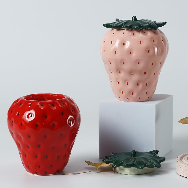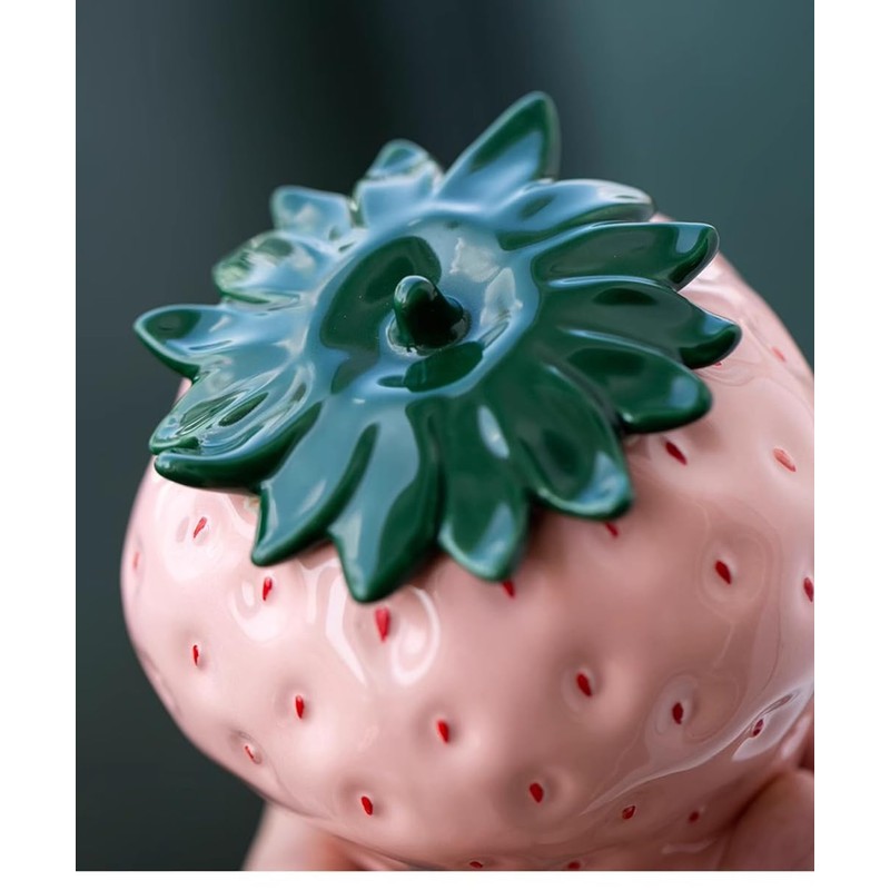 123Arts Container Strawberry Candy Dish Ceramic Food Storage with Seal Lid