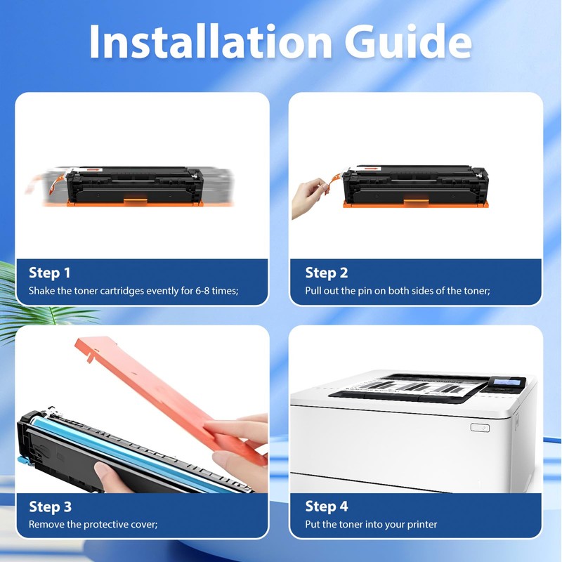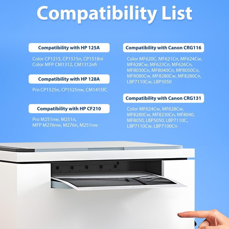 - Package Cotent: Compatible for hp 125a toner cartridge (4 packs, cb540a black, cb541a cyan toner, cb543a magenta toner, cb542a yellow toner)