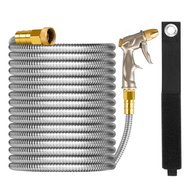 - 【Lightweight & Easy to Carry】 This pressure washer hose is a garden hose made of stainless steel, which is much lighter than traditional rubber hoses. Because of its light weight, it can be easily carried to various places. You can also carry it in your home or garden while walking around and watering it.