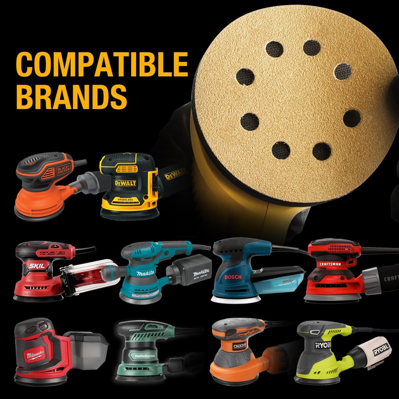 - 【Dust Removal Design】125mm sanding disc adapts to the hole layout of the 5-inch random orbital sander. The eight holes designed by fluid mechanics form a directional airflow channel to achieve real-time dust collection under high-speed operation, and simultaneously solves the problem of 70% of the grinding chips of traditional sandpaper, ensuring that the sand surface remains open during continuous operation.