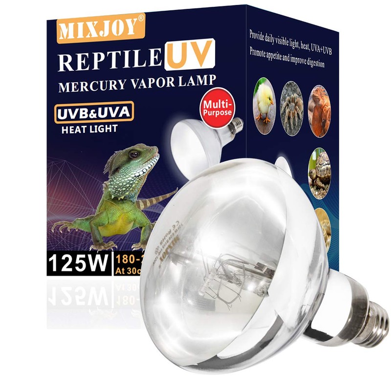 125W Reptile Heat Lamp Bulb, MIXJOY High Intensity Self-Ballasted UVA UVB Light Bulb, Full Spectrum Sun Light for Reptile and Amphibian Use