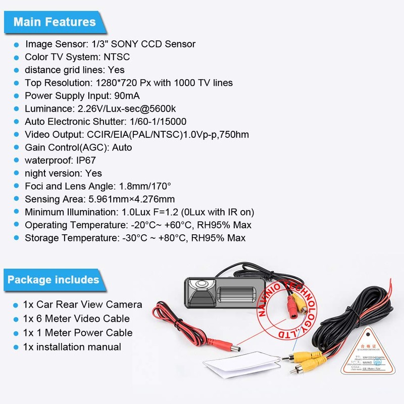 - 【HD Image Quality】: 1280 * 720 pixels 1000TV lines.License plate light rear view camera, can directly replace the license plate light. This rear view camera uses high-resolution sensors and lenses to provide clear and detailed images that help you accurately determine the situation behind your vehicle.
