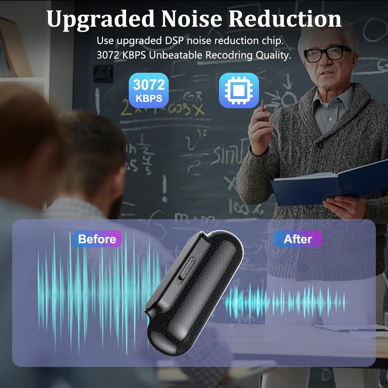 - ✔️【Professional Digital Recorder with Noise Reduction】- Adopt high-definition noise reduction chip to minimize the noise, you will get a high-fidelity recording, and you can record the voice as long as your ear can hear.Connect the audio recorder to your computer to synchronize the time first before recording. Support playing in computer(WAV format) & earphones(Mp3).