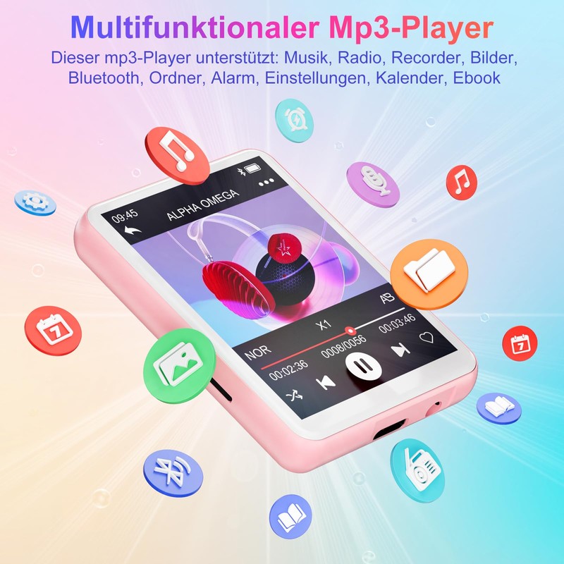 - Multi-function digital MP3 player: the MP3 player has a 2.4 inch touch screen that allows you to quickly select the desired function, FM radio, recorder, eBooks, photo, alarm clock, folder, calendar and more. English, German, French, Italian, Spanish and 29 other languages are also supported.