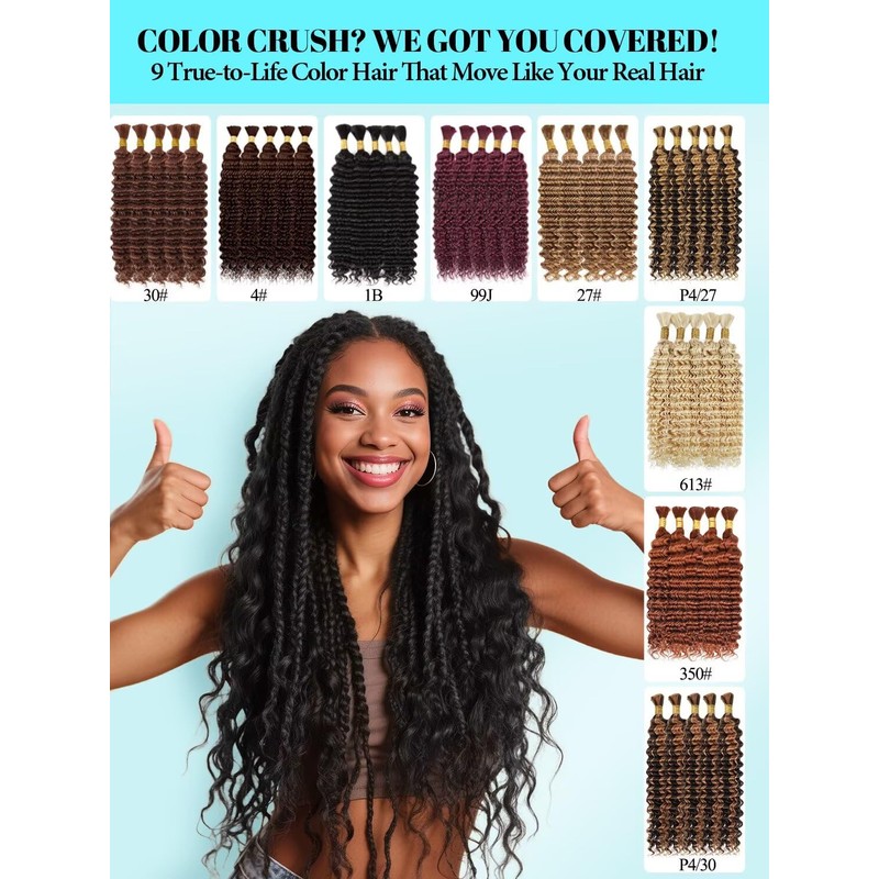 - Versatile Styling: Embrace your creativity and express your unique style with our human braiding hair. Human hair for boho knotless braids, bohemian crochet braids, boho Locs and goddess box braids with endless possibilities and stunning looks. Human hair for braiding with a wide range of colors (#1B/#27/#30/#350/#4/#99J/#4-27/#4-30/#613), You can freely match it in the style you want.
