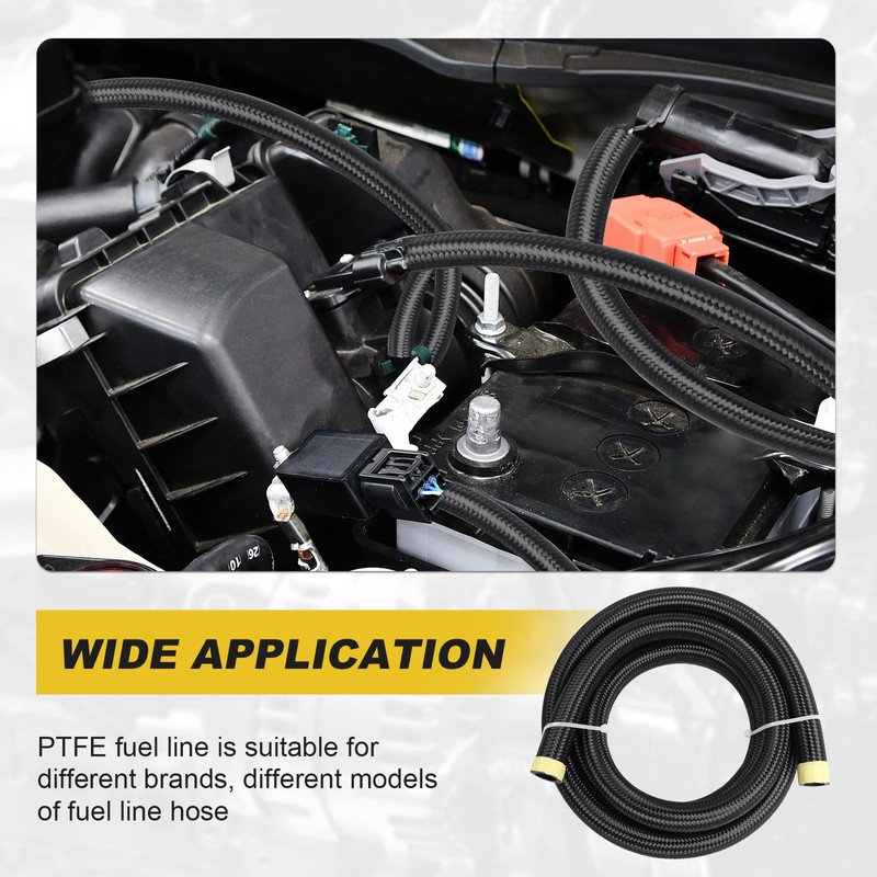 - 【Varied Application】: PTFE fuel line is suitable for different brands, different models of fuel line hose. It can be used as vacuum line, coolant fluid hose, turbo cooler line, fuel supply line, fuel gauges line, oil feed line