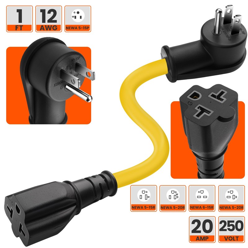 • 【Plug & Play Durable Enhanced Cable】 Our 15 Amp to 20 Amp plug adaptercables are designed with maintainability in mind, featuring molded plugs and copper wire coating. Cooperate with indoor or outdoor use to effectively prevent surface oxidation.This durable design ensures the lifespan and reliability of the equipment, giving you peace of mind about its performance and safety It is easy to install and does not require tools or knowledge of electrical wiring. Just plug in the adapter and turn on the power.
