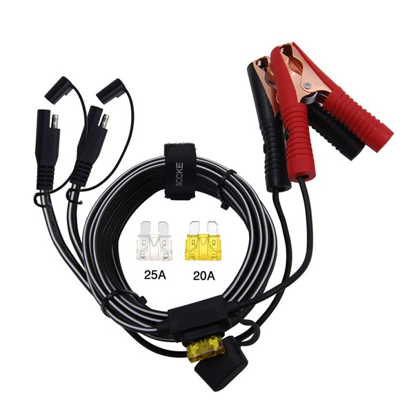 - Package Contents: 1xSCCKE Battery Clip to SAE Connector 1x 20Amp fuse 1x 25Amp fuse