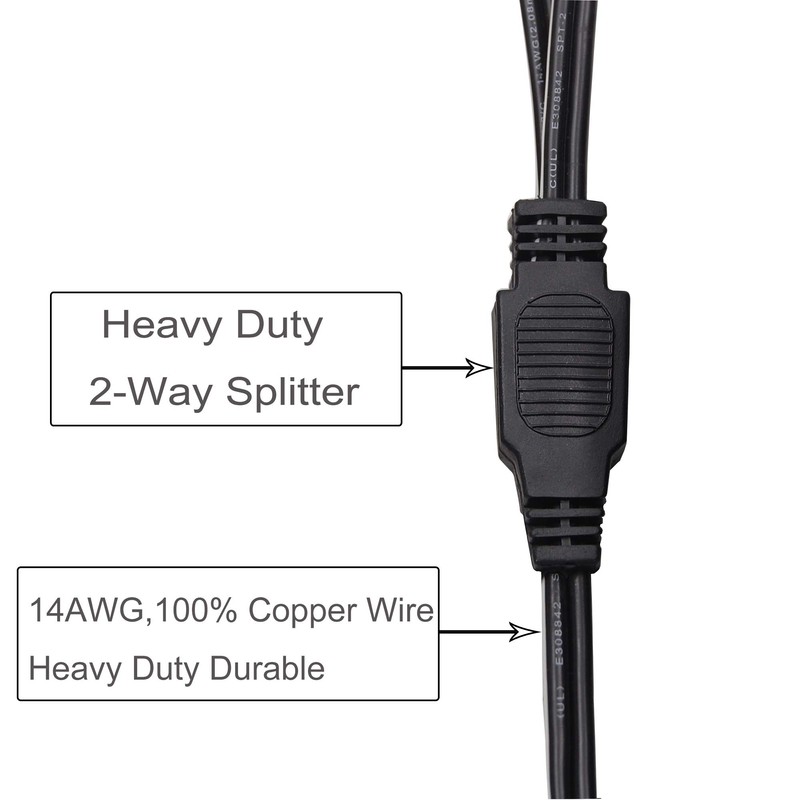 - 14 AWG(14 awg,2.08mm2>16 awg,1.31mm2) extension cable lengthened up to 12ft / 3.66m,20Amp built-in fuse for overload and short-circuit protection. And will get one more extra 20 Ann and 25 Ann fuse as a backup.