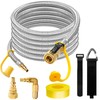 - 【𝐏𝐫𝐞𝐦𝐢𝐮𝐦 𝐌𝐚𝐭𝐞𝐫𝐢𝐚𝐥】--12Ft 1/4" quick connect propane hose is made of durable stainless steel braided to better prevent against animal gnawing.All connection fittings are made of 100% solid brass and the propane hose is CSA certified to ensure secure connections between propane equipment and RVs.