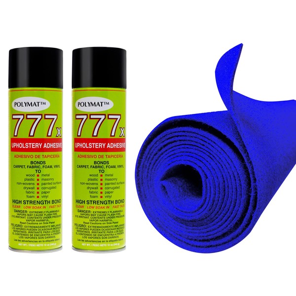 12FT x 3.75FT Blue Carpet ROLL + 2 CANS of 777 Glue for Polymat Speaker woofer Box Backed Carpet