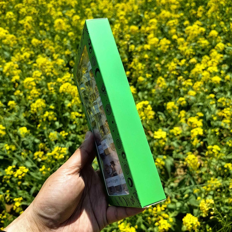 - 12 unique crystal gemstone bottles filled with healing stones and chakra crystals