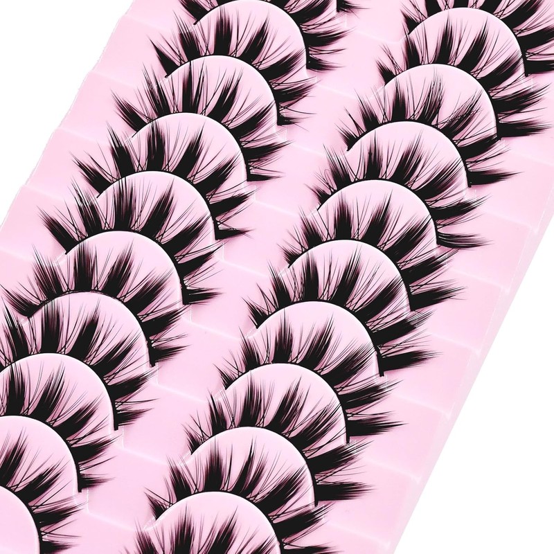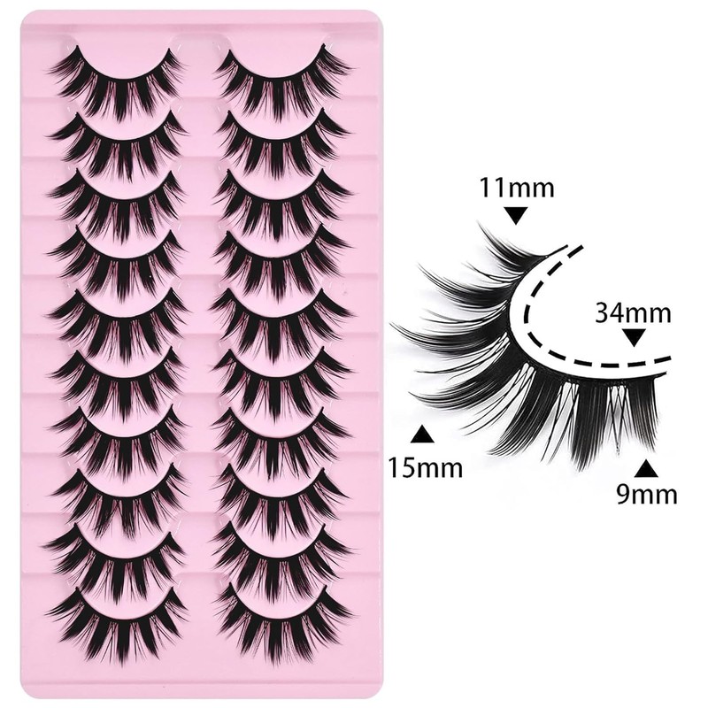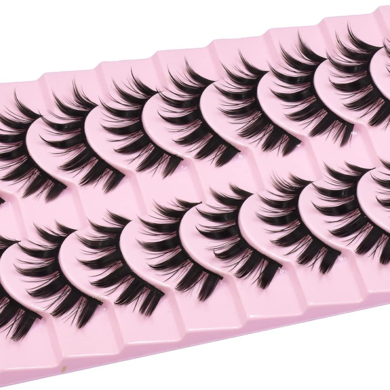12mm Manga Natural Look False Eyelashes, Easy to Apply Doll Makeup 10 Pairs (01)